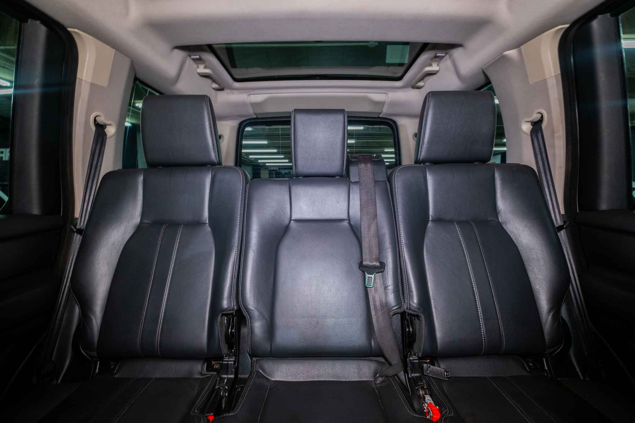 On the exterior, it boasts striking 19″ alloy wheels, bi-xenon headlights with washers and LED daytime running lights, front fog lamps, heated, electric folding mirrors with puddle lamps, rain-sensing wipers, roof rails and a tow pack for added utility. Inside, the spacious seven-seat cabin features grained leather upholstery, 8-way electric front seats with driver lumbar and memory, and a 7-seat pack with 35/30/35 split-fold second row, third row seats, head curtain airbags and map lights. Comfort is enhanced with dual-zone automatic climate control, rear air vents, cruise control, and a multifunction steering wheel with paddle shifts. Entertainment comes via a premium Meridian sound system (380W) with 11 speakers, MP3/CD compatibility, USB inputs, Bluetooth and optional touchscreen navigation. Safety and convenience include rear parking sensors with reverse camera, front PDC, electric air suspension with Terrain Response®, hill descent control, dynamic stability control, ABS/EBD, and multiple airbags. Other thoughtful extras include full-size spare wheel, auto high beam assist, keyless entry/start, cup holders front/rear, ambient lighting, and ample cargo space.