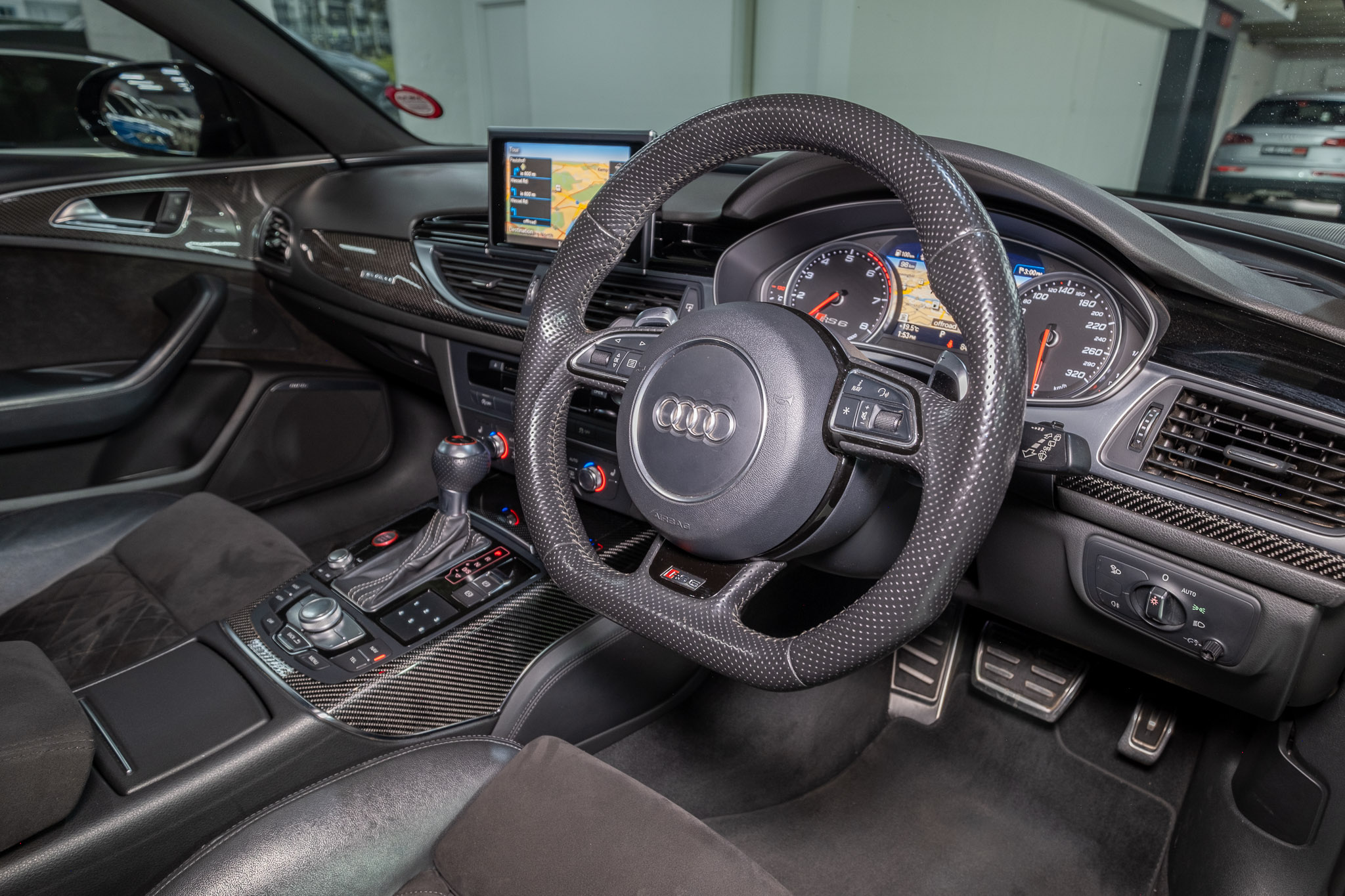 Powered by Audi’s legendary twin-turbo V8 paired with Quattro all-wheel drive, it offers relentless acceleration, razor-sharp handling, and confidence in all conditions. The driving experience is further elevated by sports bucket seats finished in premium leather and Alcantara, providing exceptional support and a motorsport feel.