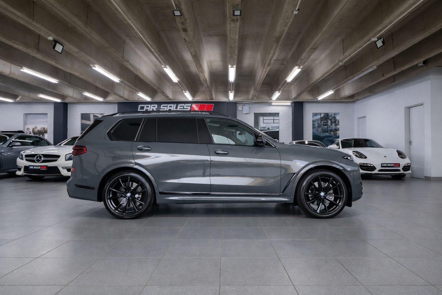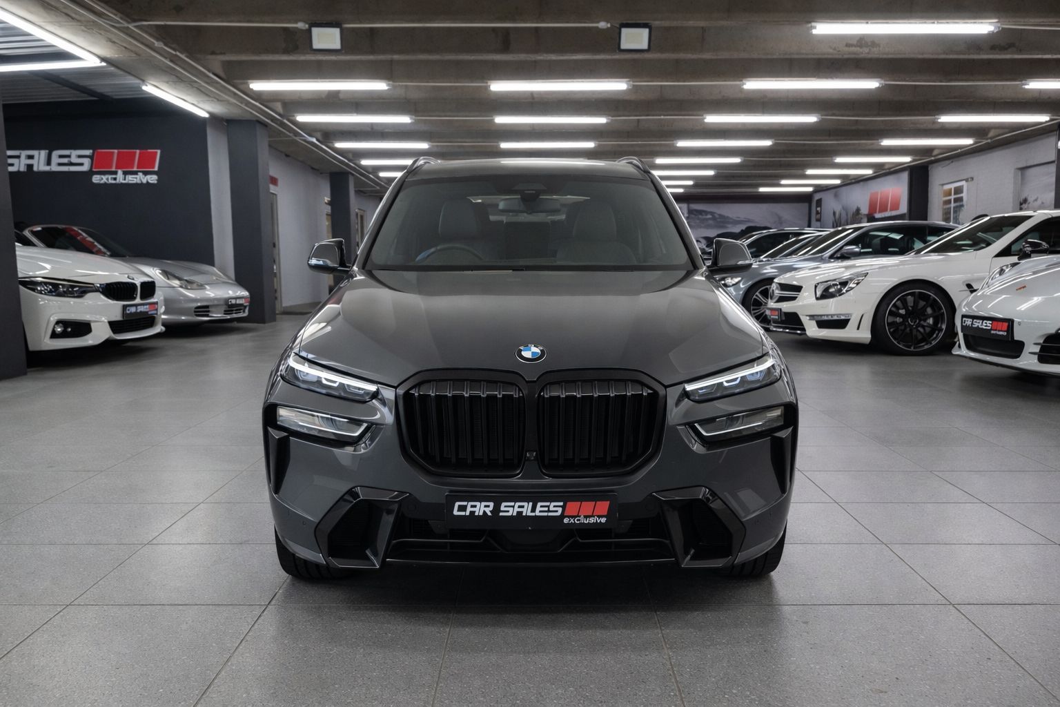 This BMW X7 xDrive40d M Sport presents in an exceptional specification, finished in Dravit Grey Metallic with a BMW Individual Merino Black extended leather interior, combining understated elegance with flagship SUV presence.