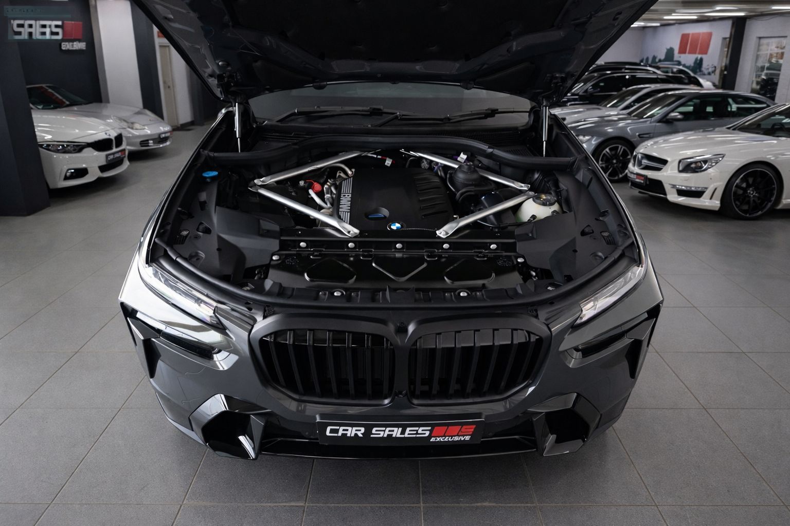 This example is exceptionally well optioned, featuring M Sport Package Pro, 22” M V-Spoke alloy wheels, M Sport exhaust, Integral Active Steering, M Aerodynamic kit, and black high-gloss M Sport brakes. Lighting is handled by BMW Crystal Headlights with Iconic Glow kidney grille, while comfort is elevated through Soft-Close doors, Comfort Access, Sky Lounge panoramic glass roof, 5-Zone climate control, heated and ventilated comfort seats front and rear, and heat comfort package.