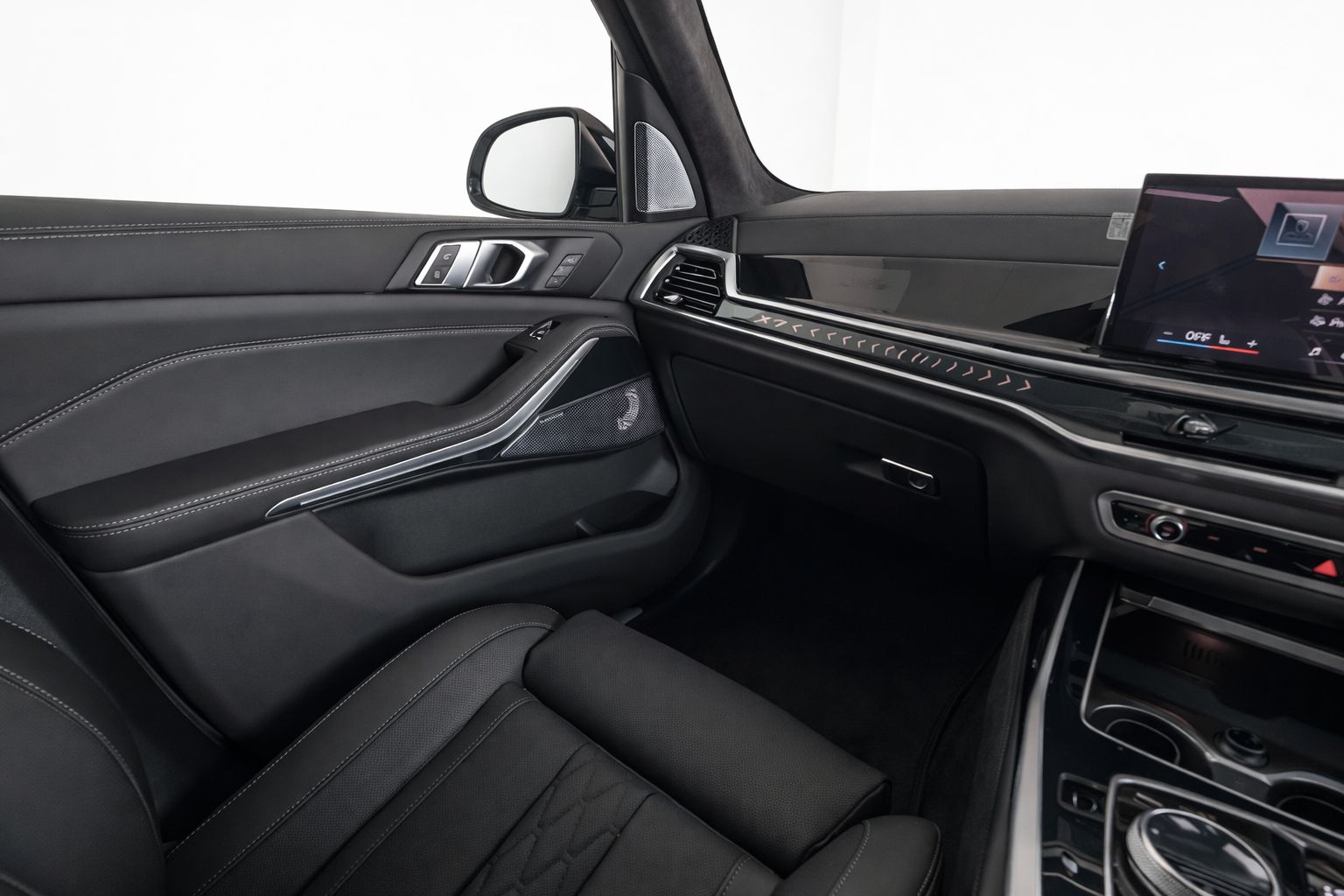 Additional features include electrically deployable tow hitch, sun protection glazing, Iconic ambient lighting, Shadow Line exterior detailing, and BMW Individual roof rails.
